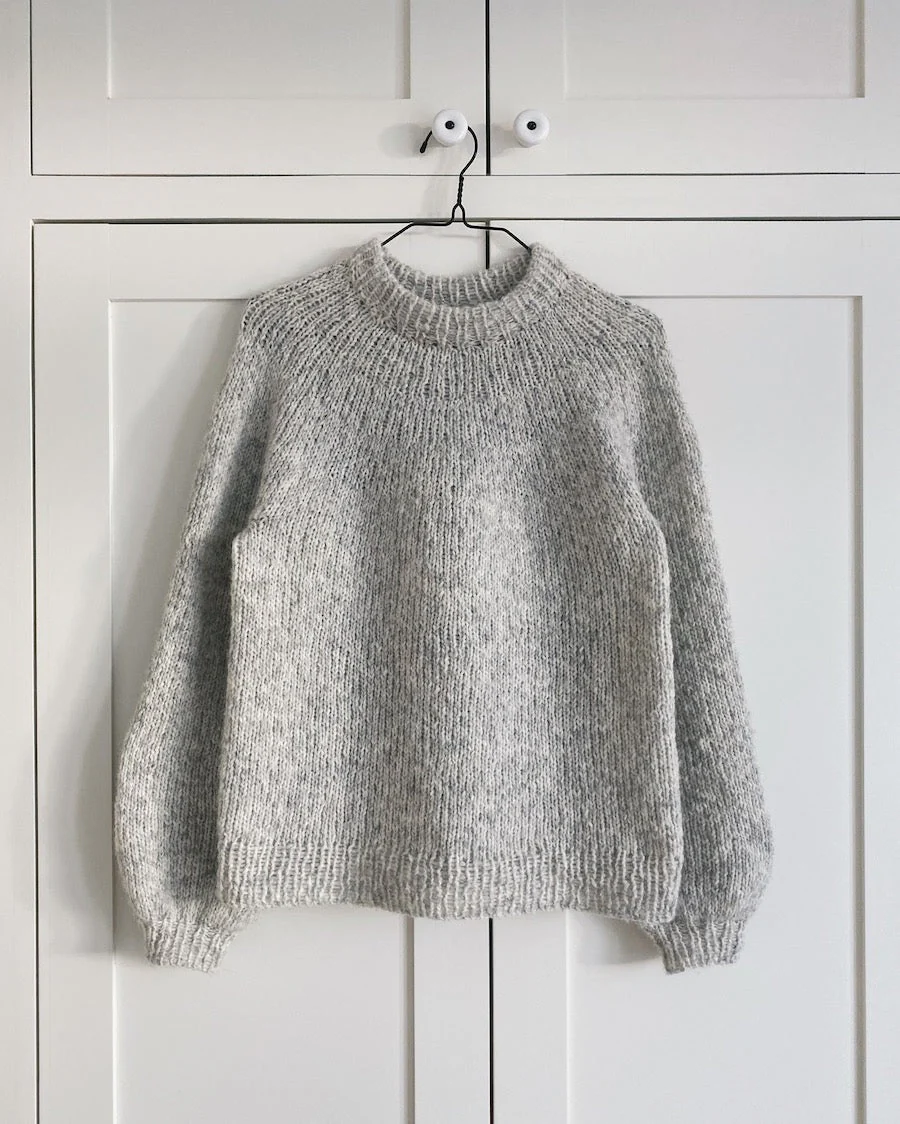 Novice Sweater is a delightfully soft and lightweight knit that practically flies off the needles. It’s knitted with large 6mm needles, making the pattern a great choice if you’re looking for a quick and easy knit. A size L sweater weighs only 350g.